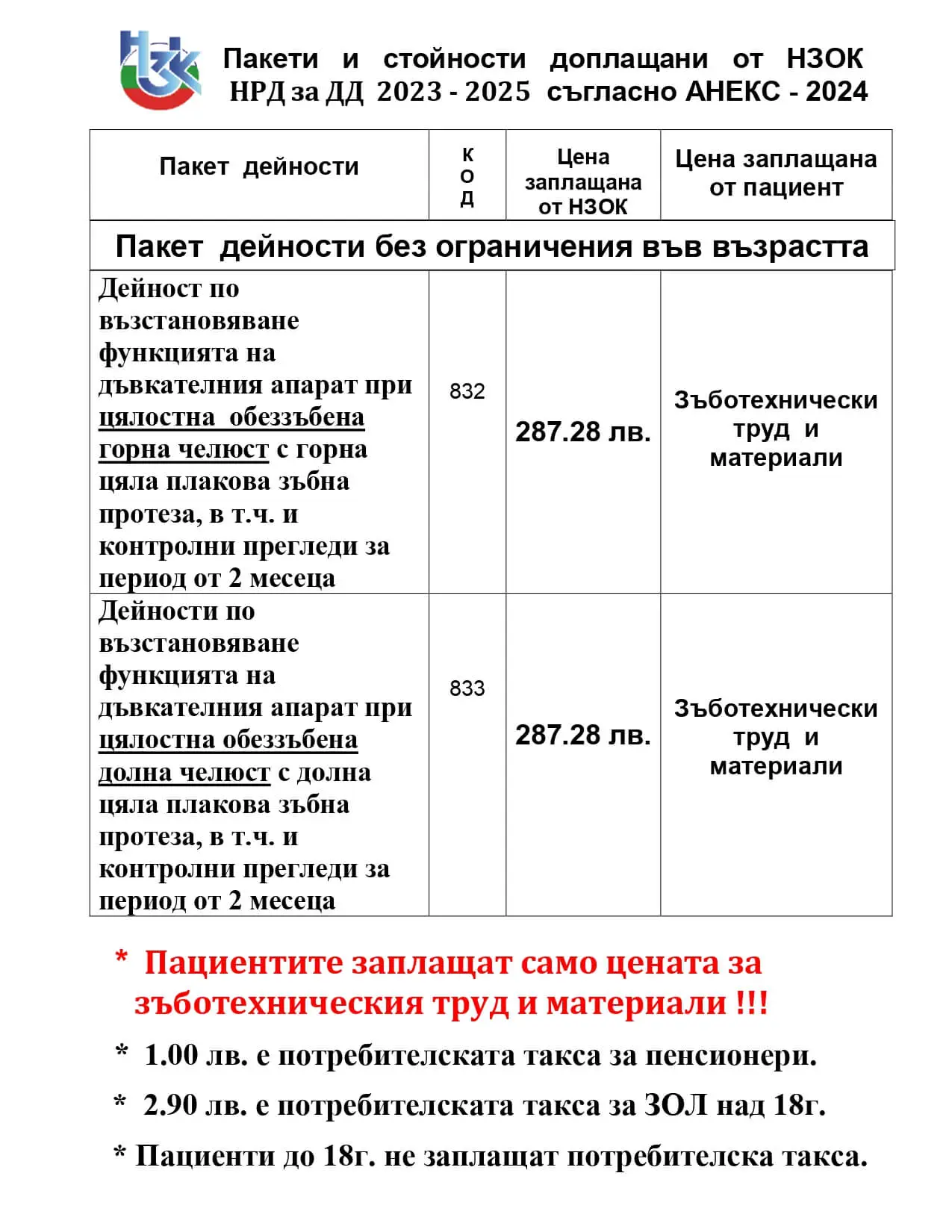 | Снемаема пластмасова протеза | 195 € / 381,40 лв |